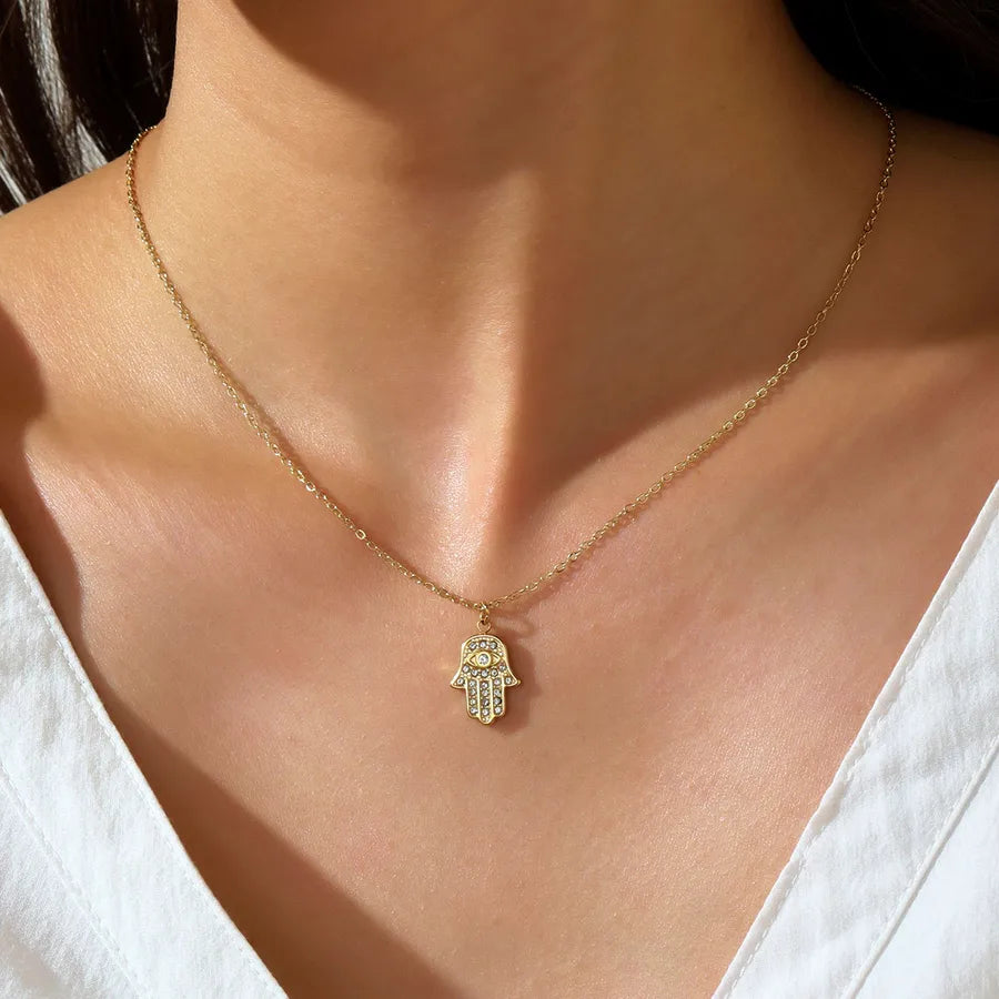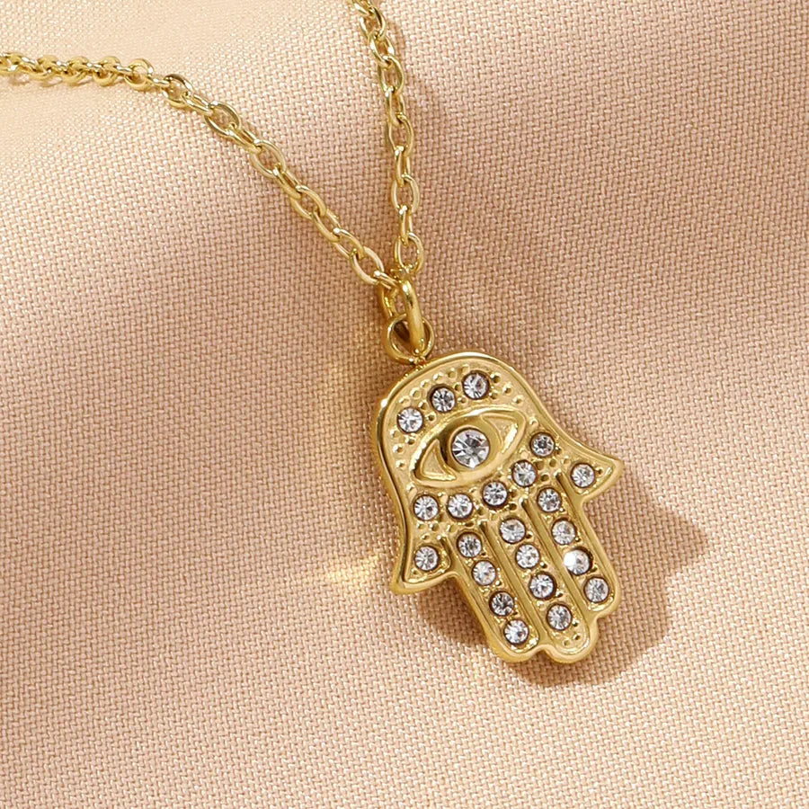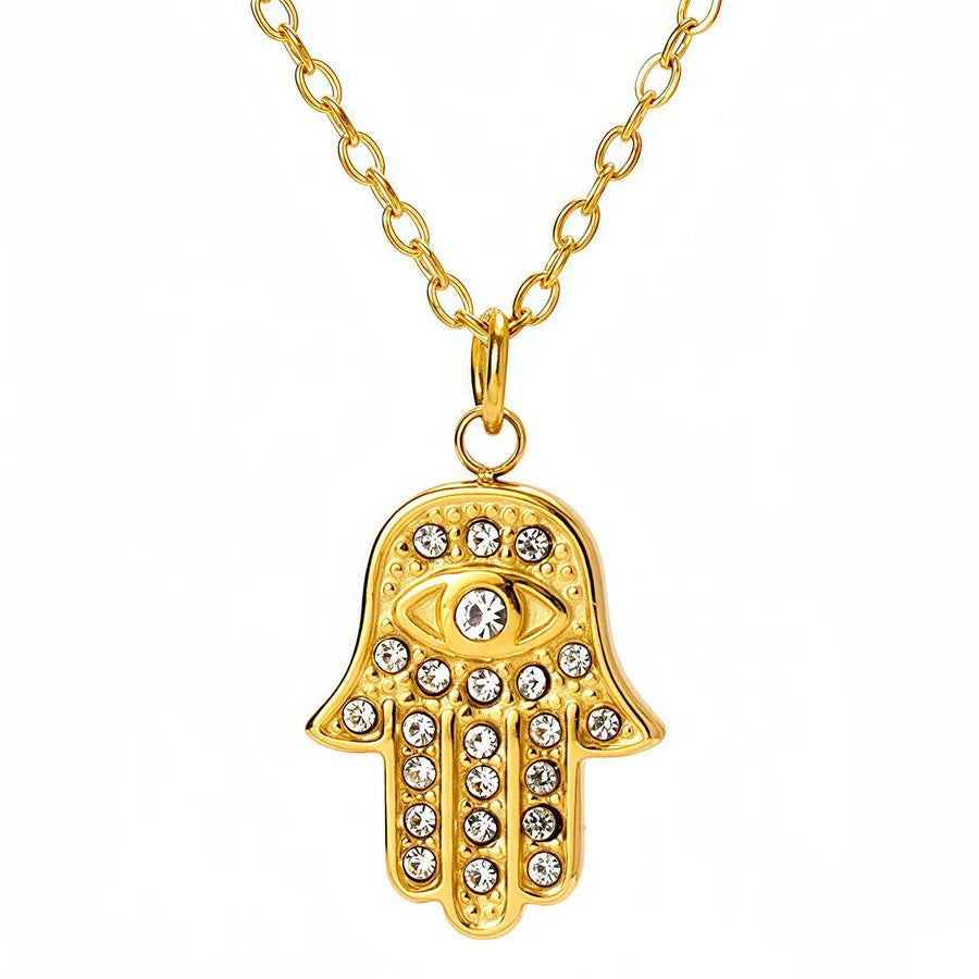 14K Gold-Plated Evil Eye Hamsa Hand Pendant Necklace