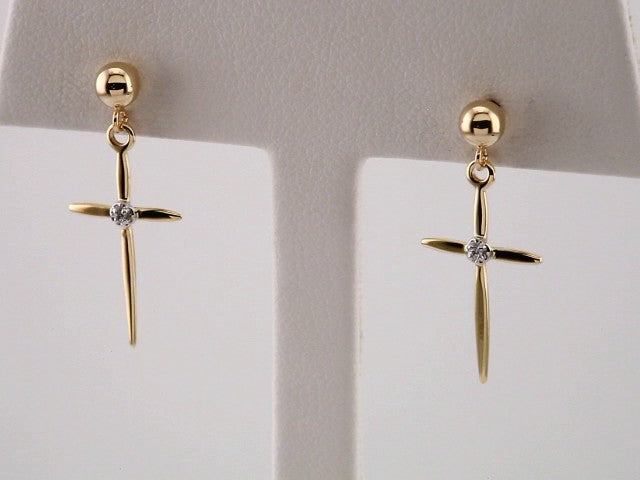 14K Yellow/White .01 CTW Natural Diamond Cross Earrings