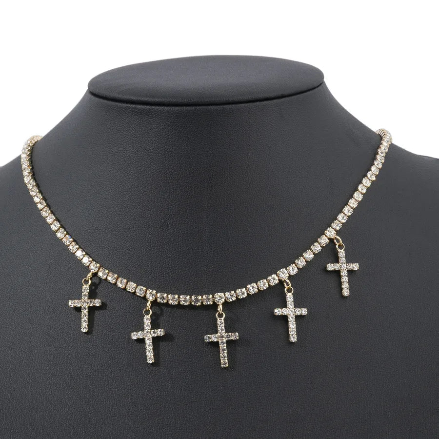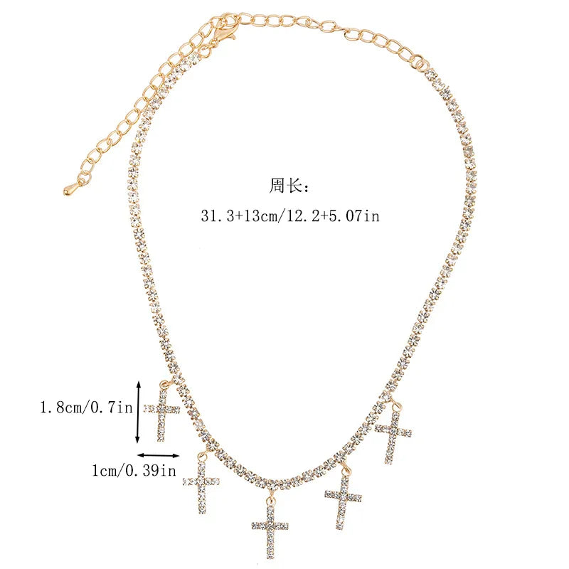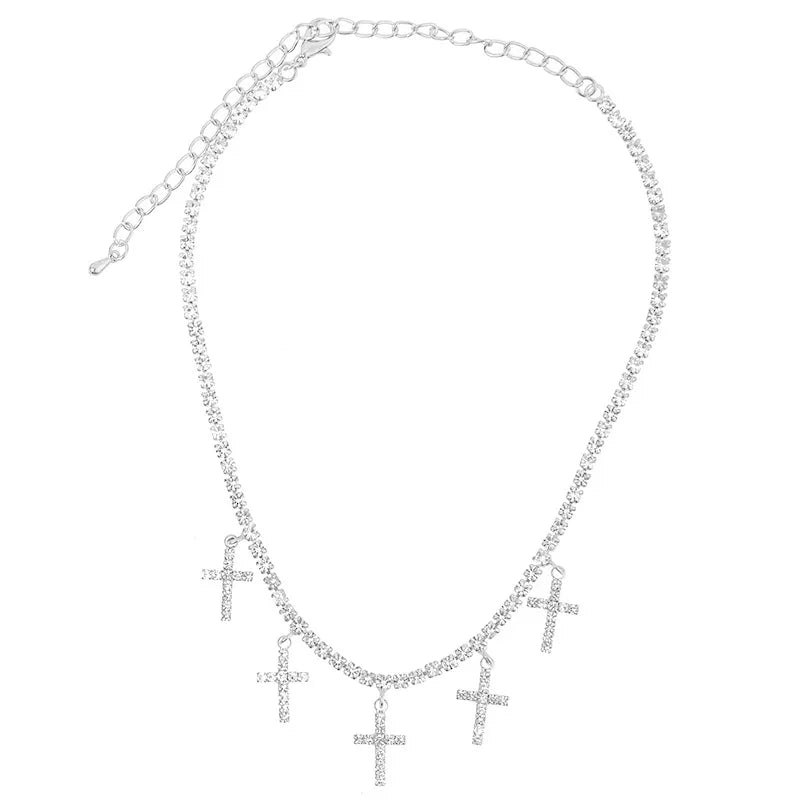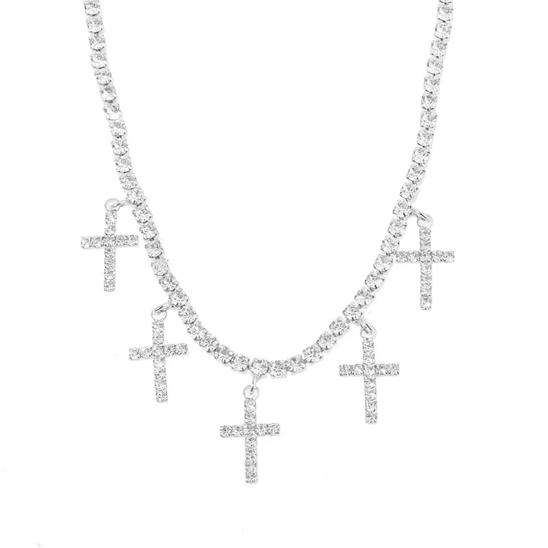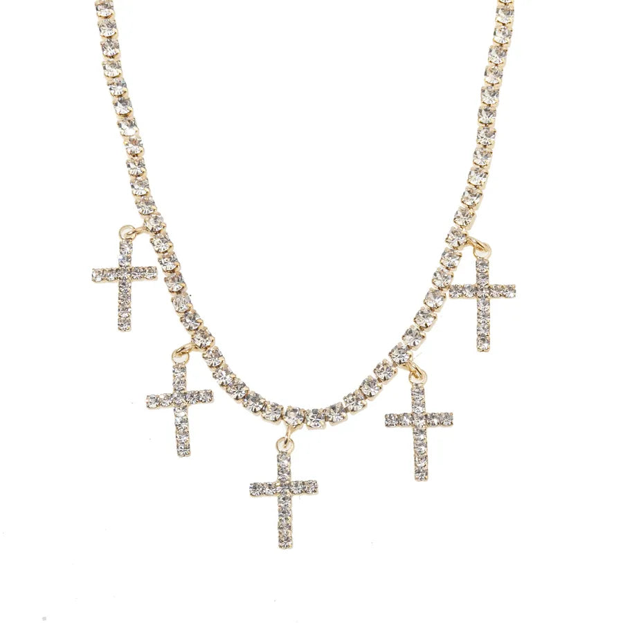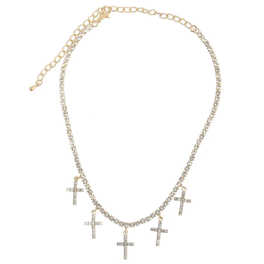 Multi Cross Gold/Silver Plated Rhinestone Necklace